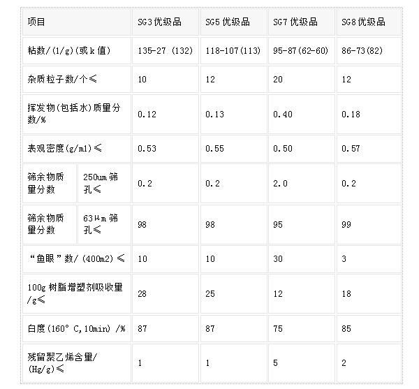 聚氯乙烯樹(shù)脂指標(biāo)
